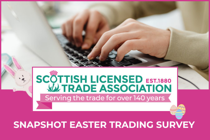 The Scottish Licensed Trade Association is inviting all licensees to take part in our Easter Trading Snapshot Survey. A one-off condensed survey, in comparison to our full Summer and Winter Business Impact Surveys, which will just take no more than…